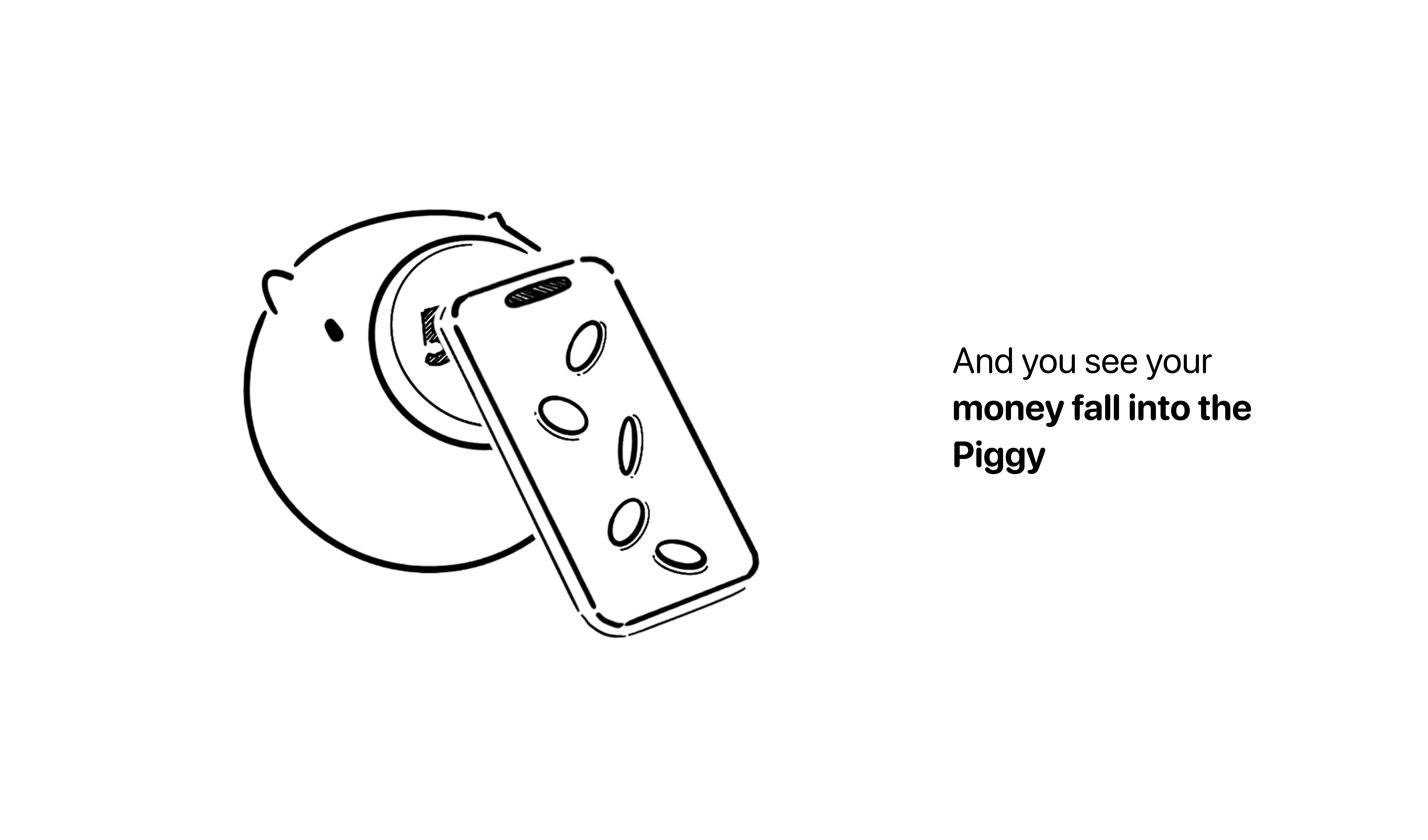 On the phone, saving starts with FaceID, followed by playful animations of money dropping into Piggy, the physical savings product complete with matching sounds