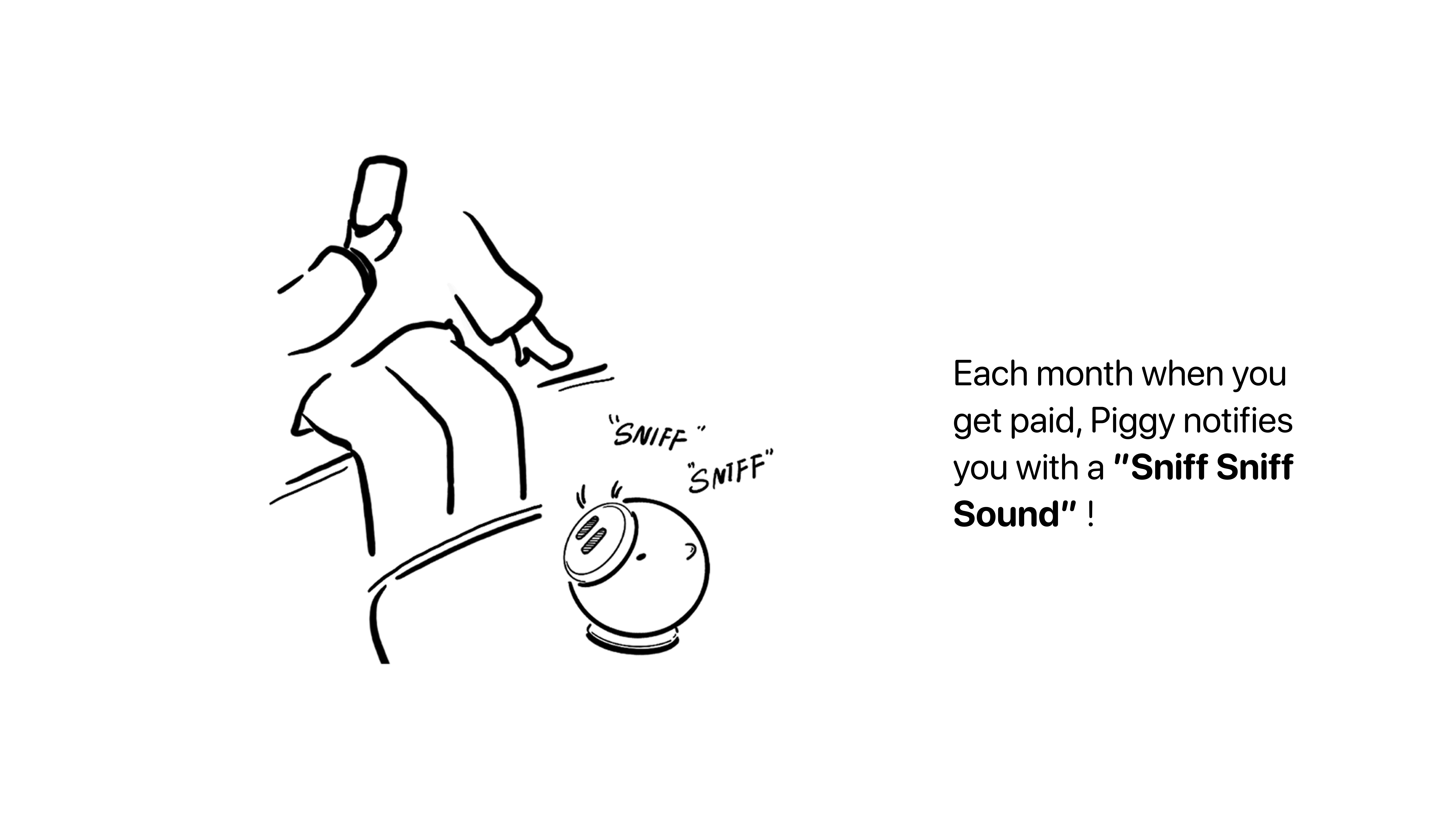 At home, Piggy stores transferred funds, sets savings goals, tracks progress, and provides periodic reminders. Its hand-sized, wireless design makes it easy to pick up and interact with, especially through its inviting nose